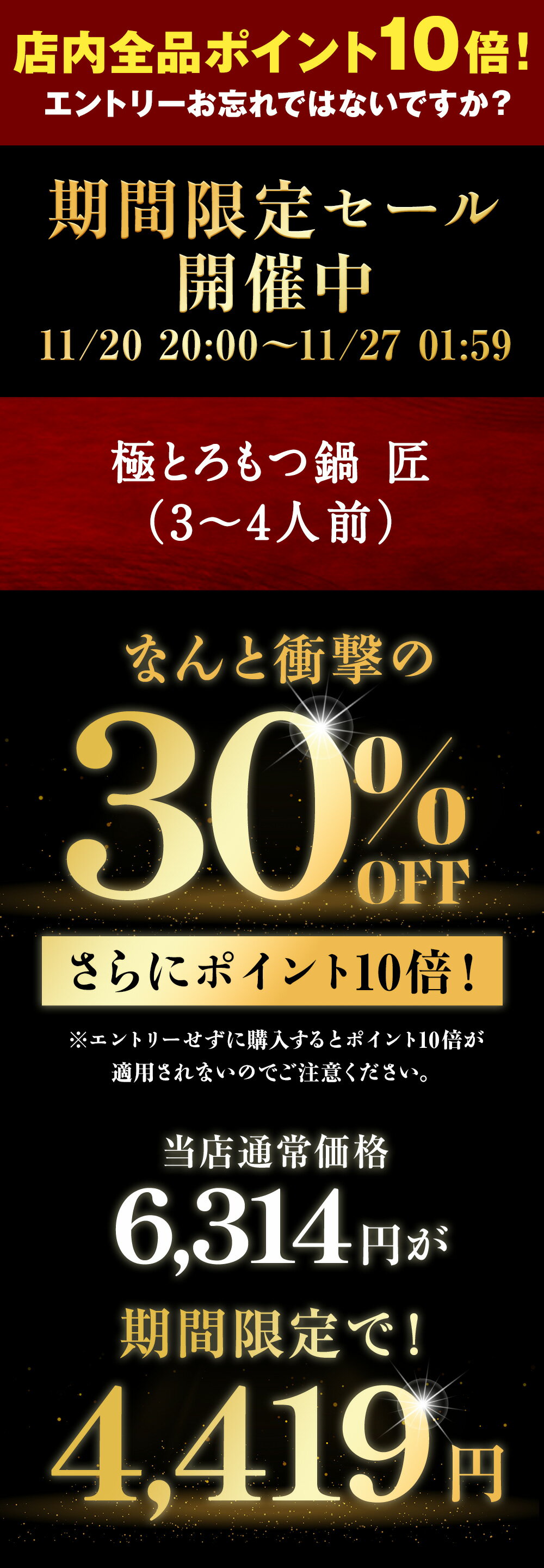 ▼【期間限定!6,314円→4,419円&P10倍】黄金屋 極とろ もつ鍋セット 匠 3~4人前