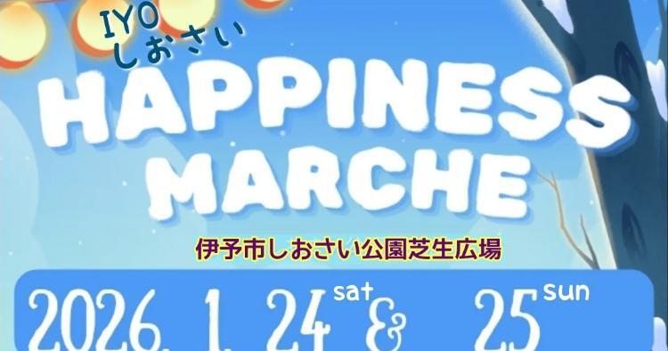 愛媛県伊予市の「しおさい公園・芝生広場」で、2026年1月24日(土)、25日(日)の2日間、「Happiness Marche」が開催されます。
