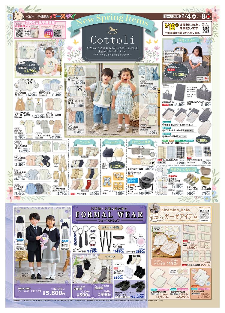 「Cottoli」や「FORMAL WEAR」、「hiromina_baby ガーゼアイテム」にも注目!!