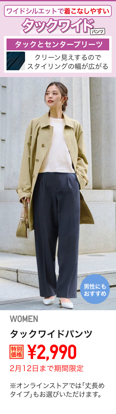 今回は、「スウェットシャツ」や「タックワイドパンツ」などが特別価格で登場!