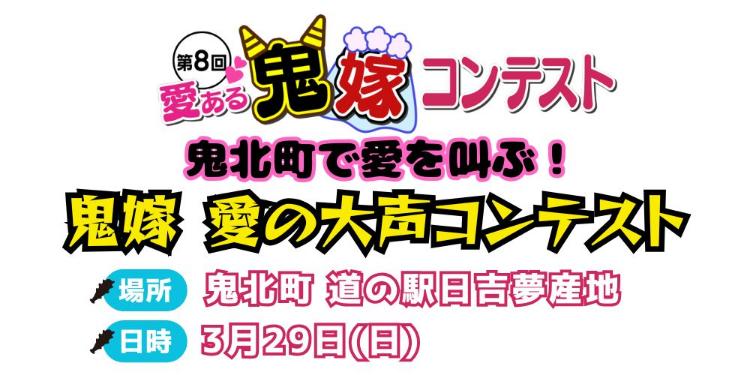 愛媛県北宇和郡鬼北町の「道の駅 日吉夢産地」で、2026年3月29日(日)に「第8回 愛ある鬼嫁コンテスト~鬼北町で愛を叫ぶ!鬼嫁 愛の大声コンテスト~」が開催されます。