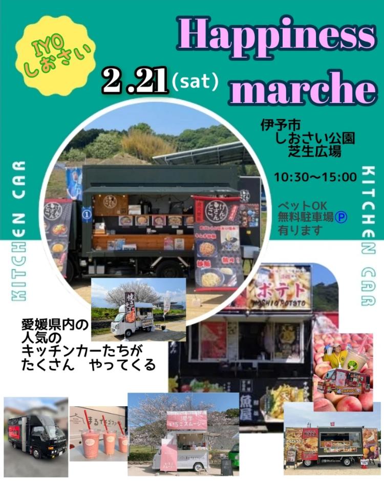 愛媛県伊予市の「しおさい公園・芝生広場」で、2026年2月21日(土)に、「Happiness Marche」が開催されます。