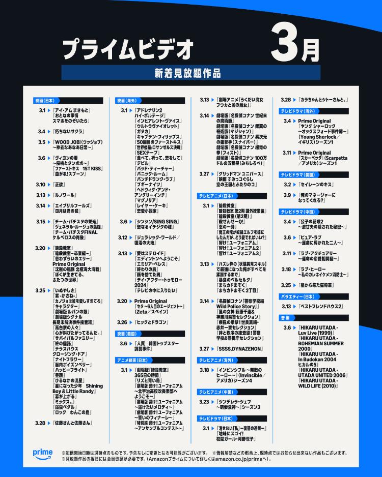 Amazonプライムビデオ 2026年3月の配信作品一覧