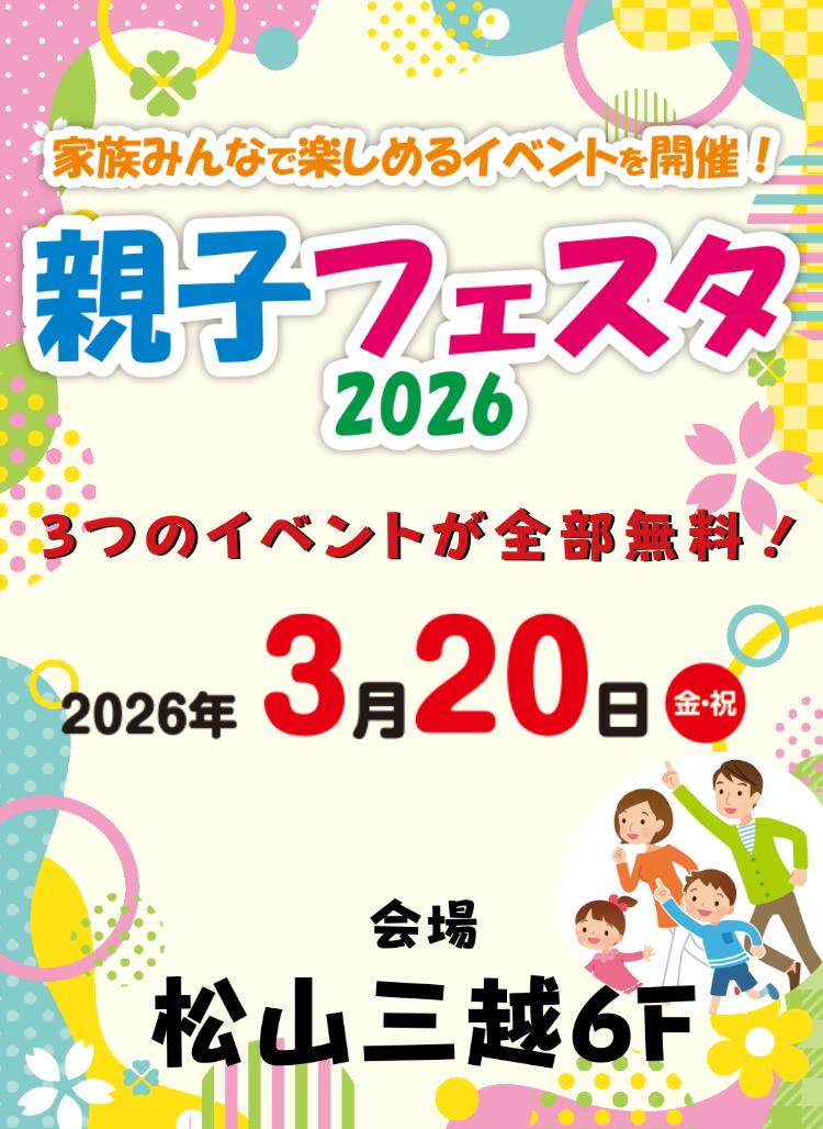愛媛県松山市の「松山三越 6階 E3ホール」で、2026年3月30日(金・祝)に、「親子フェスタ2026」が開催されます。