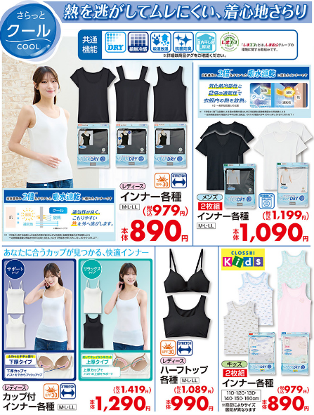 「熱を逃がしてムレにくい、着心地さらり」や「汗をかいてもつづくさらっと感」、「ヘビロテSERIES」も!