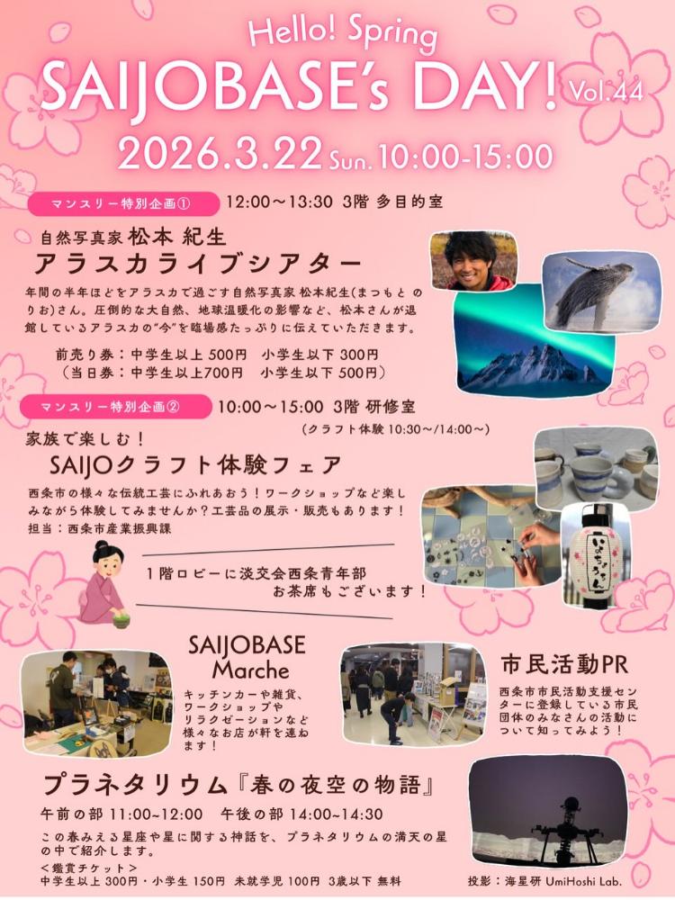 毎月第4日曜日は"SAIJO BASEの日" 3/22のイベント内容は?