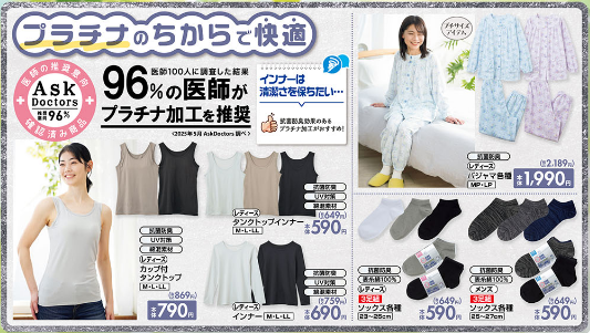 「プラチナのちからで快適」や「日差しケアで快適」、「着用時姿勢サポートで快適」も!