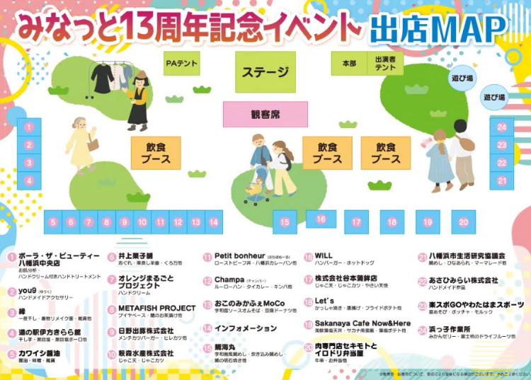 「みなっと13周年記念イベント」のイベントスケジュール・出店マップはこちら。