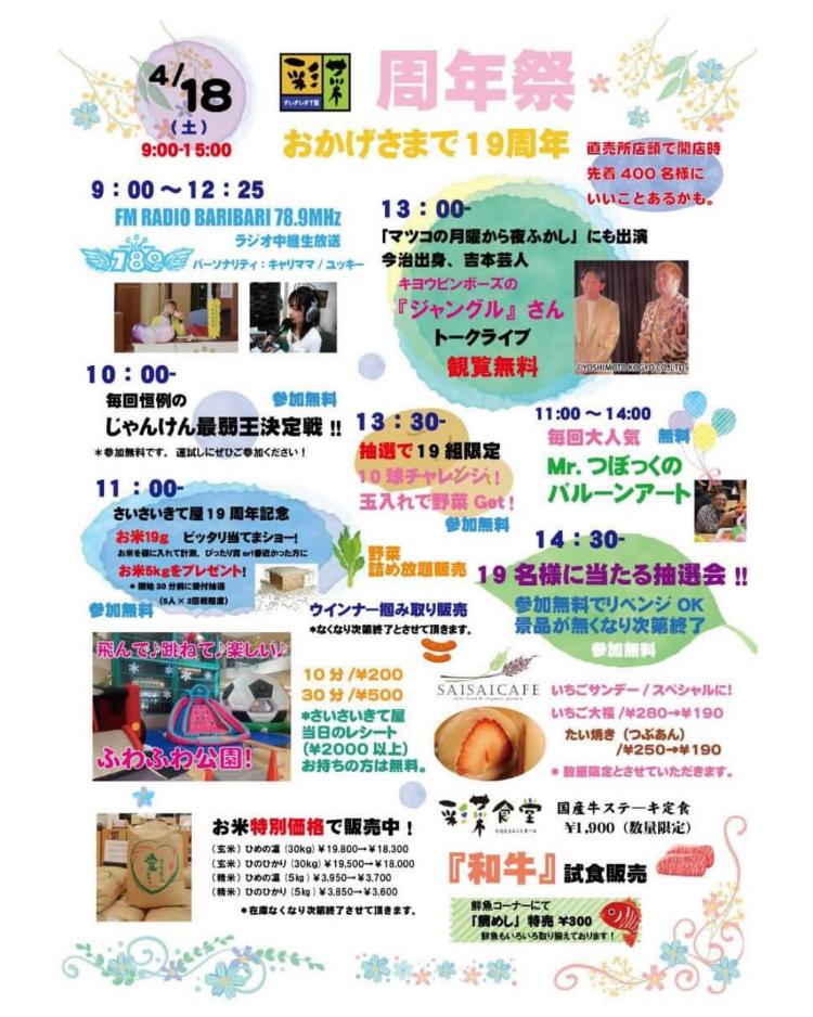 「さいさいきて屋 19周年祭」イベント内容はこちら