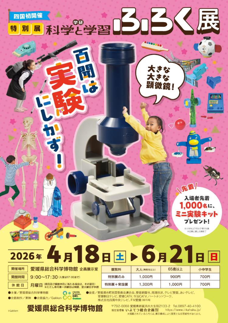 愛媛県新居浜市の「愛媛県総合科学博物館 企画展示室」で、2026年4月18日(土)~6月21日(日)の期間、特別展「学研 科学と学習ふろく展」が開催されます。