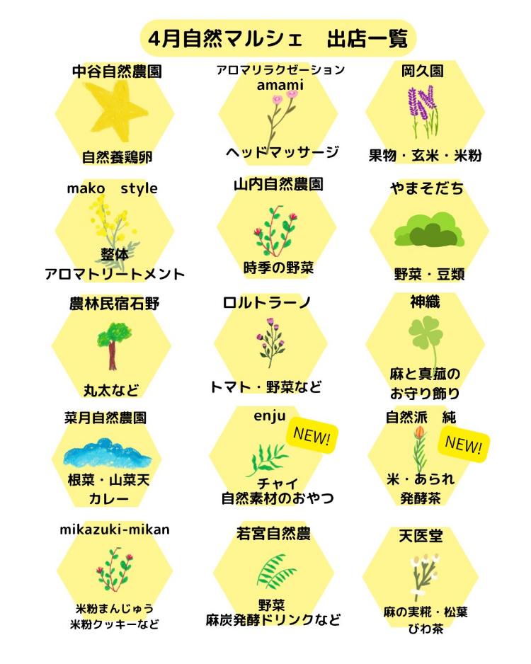 「第22回 こよみスペースの自然マルシェ」の出店情報は下記です。