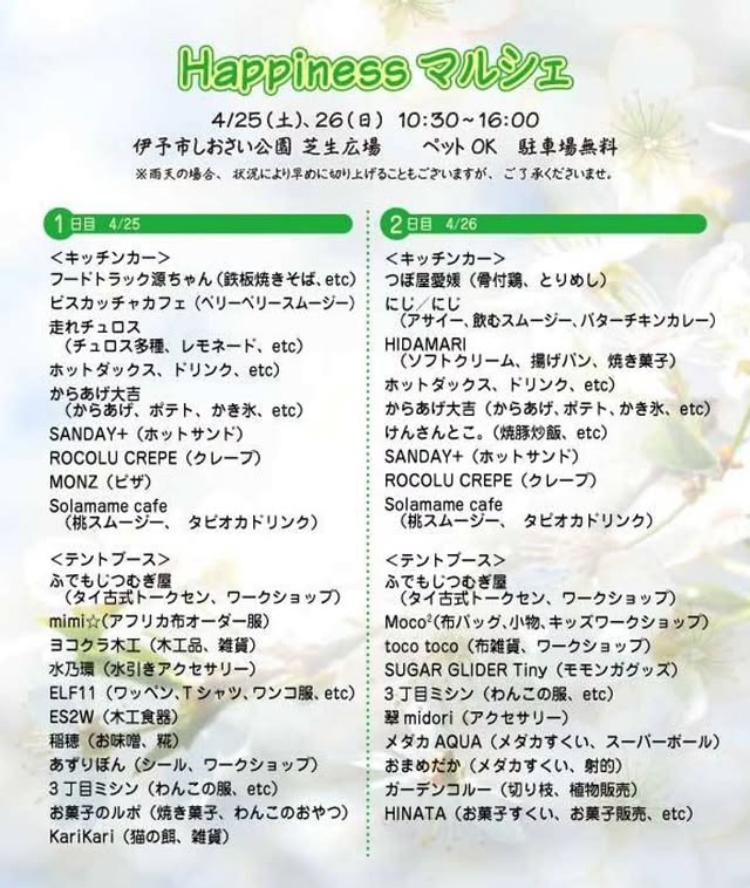 ハピネスマルシェ(@伊予市・しおさい公園/イベント)4/25、26
