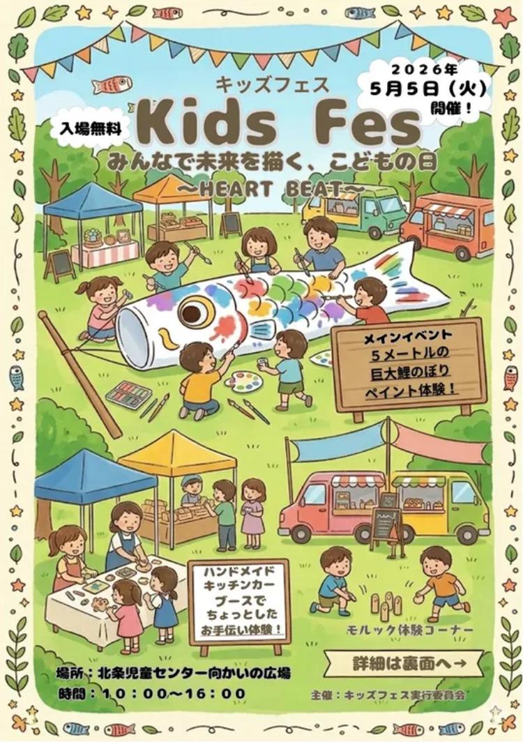 愛媛県松山市の「松山市北条児童センター 向かいの広場」で、2026年5月5日(火・祝)に、「キッズフェス-HEART BEAT-」が開催されます。