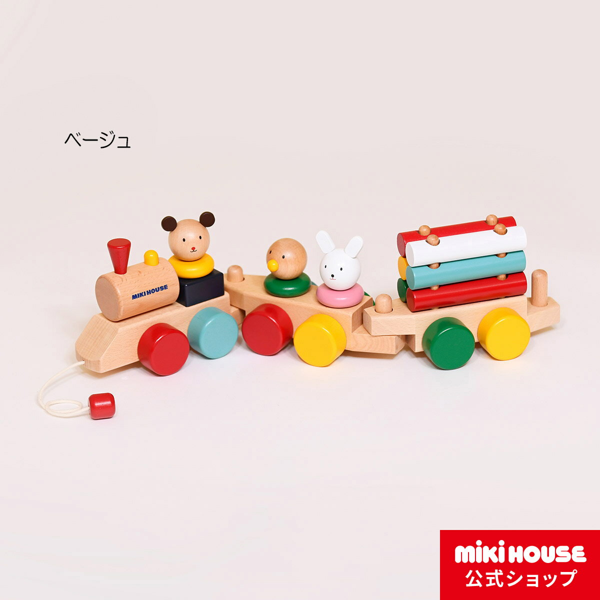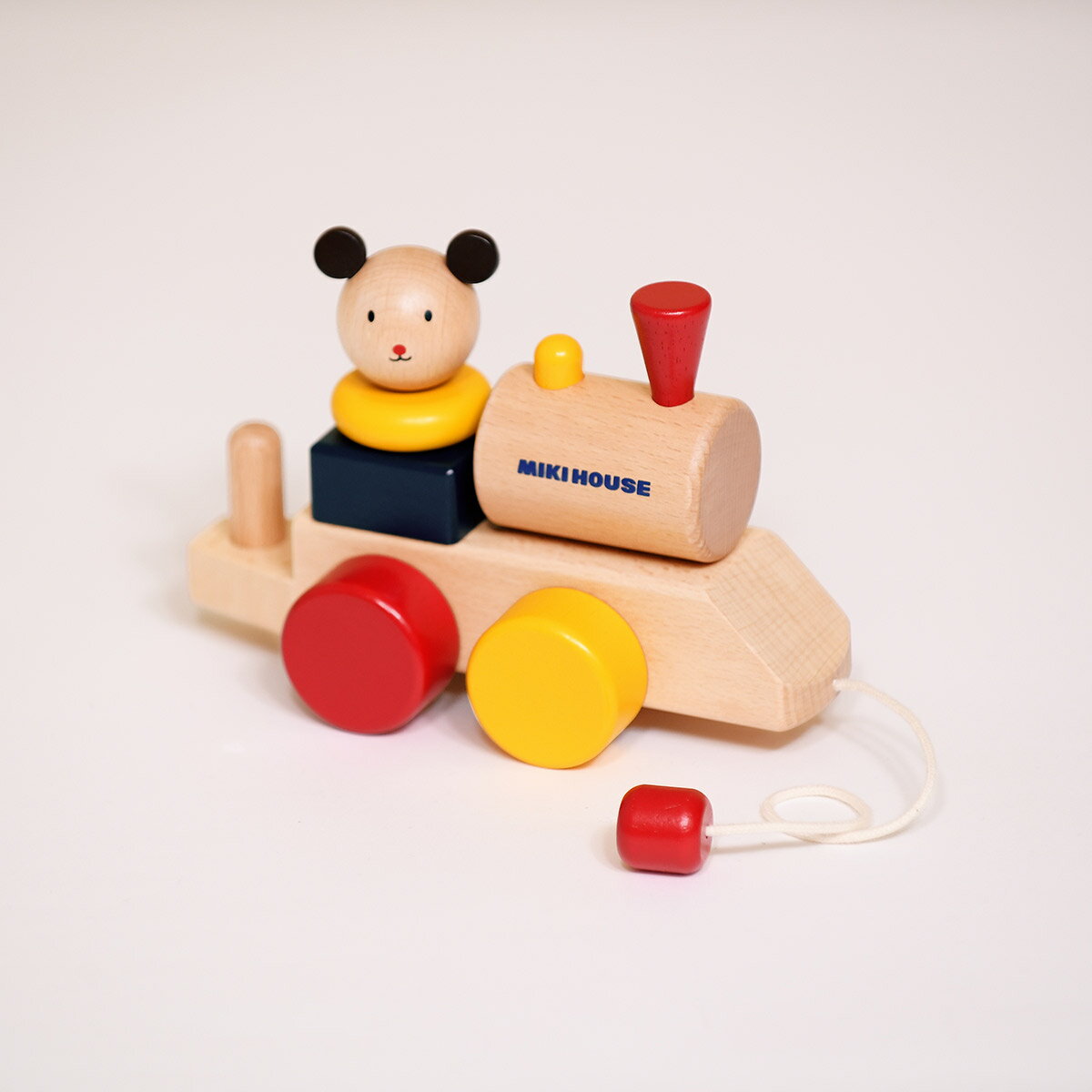 出産祝いでもらったミキハウスの「プルトーイ」は、うさぎさんやくまさんが乗った汽車ポッポ。
