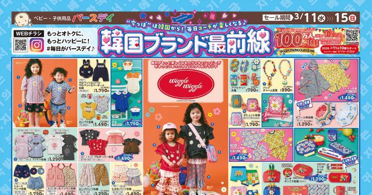 バースデイ最新チラシ情報!2026年3月11日(水)~3月15日(日)のバースデイは「韓国ブランド最前線」wiggle wiggle・Atelier Apricot・RYOKKUMiほか